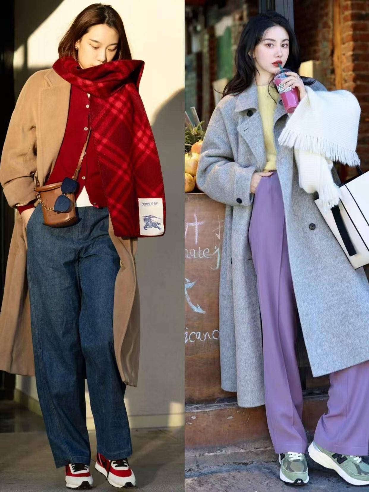 作为普通素人,肯定是无法和时尚博主女明星模特的身材比例媲美,有我这时候你还选择一条紧身裤或者是修身的打底裤来搭配上大衣外套,就很容易暴露你下半身的缺点。