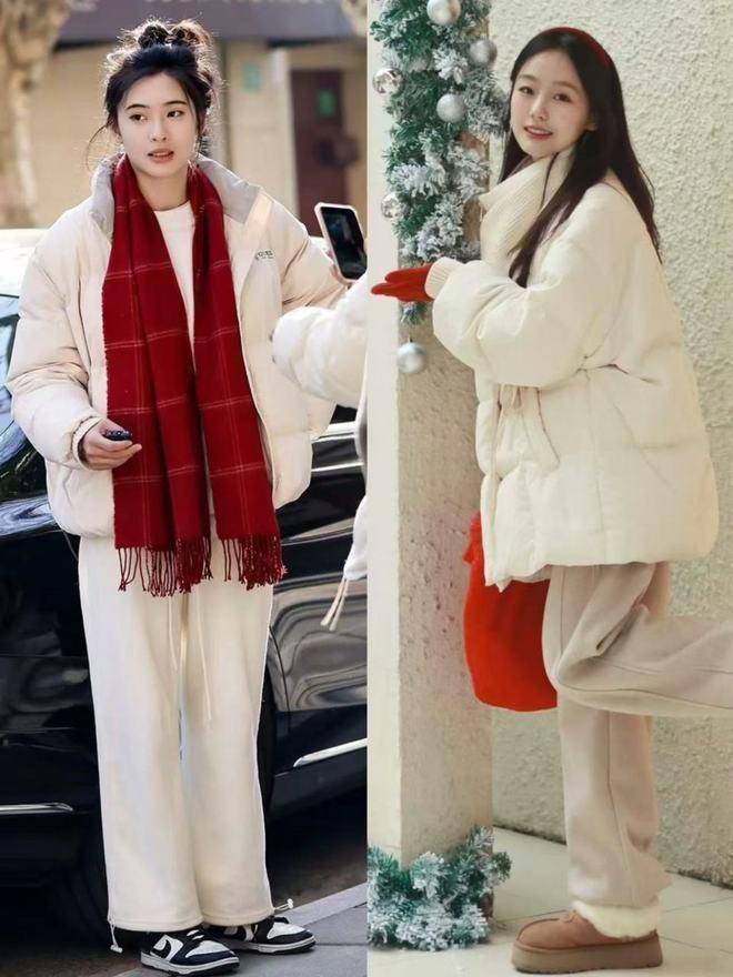 第四章节:短羽绒服与阔腿裤的精妙搭配,个子女生展现出高挑身姿①:白色羽绒服搭配阔腿裤